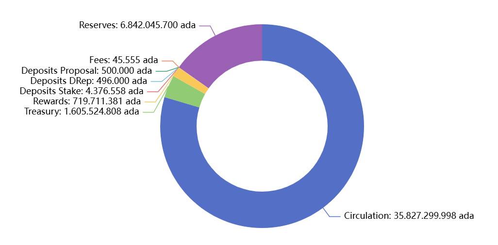 Visual representation of ada supply distribution across key categories in the Cardano network.